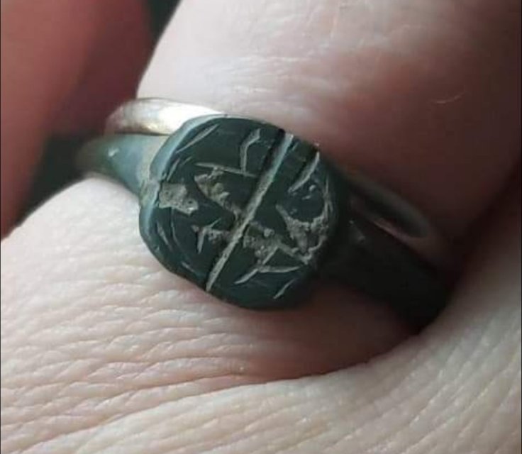 It’s obvious from the start of this post that THE THING™ is A Ring. An old ring. A ring that, according to the description on the listing, is a viking (possibly Rus Viking) “wedding” ring dating from the 10th century. A ring that, according the the description on the listing, bears a battered, scarred “Loki mask” engraved on it. They told me it was sized at roughly 8.5, which meant it wouldn’t fit me, but I figured I’d wear it on the chain my Loki and Sigyn pendant hangs from, which, like my rings, is a constant presence only ever removed for showers.